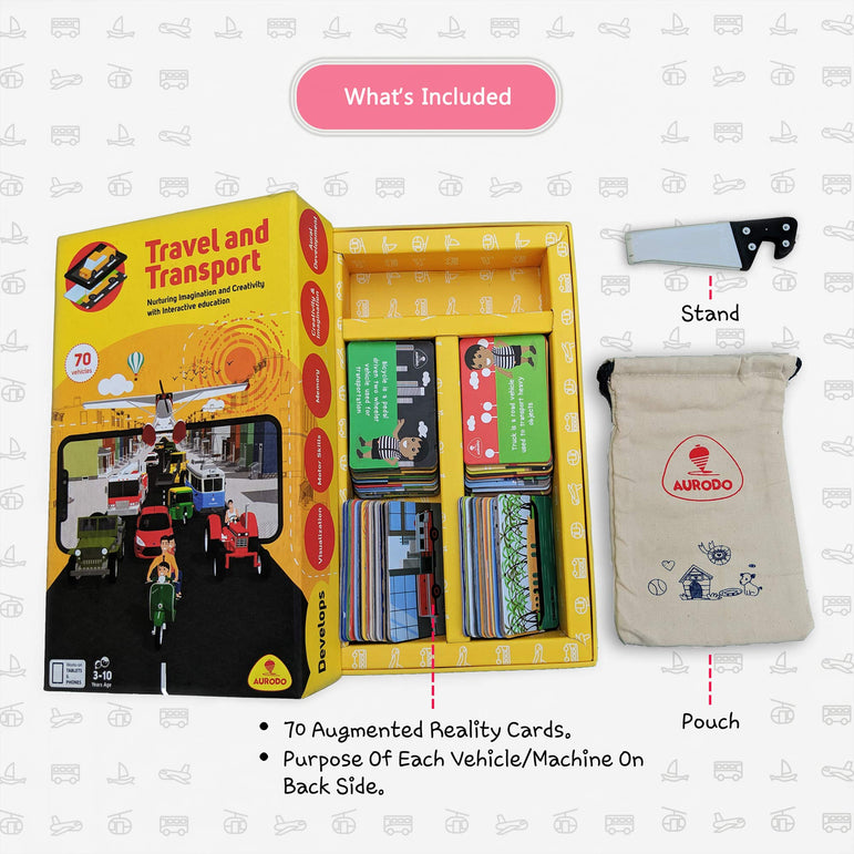 Aurodo Travel and Transport helps kids experience and learn about vehicles is a way which was never possible before. The real visualization of vehicles in real environment helps kids not only become creative but also help them improve their imagination. Also, learning about the purpose of vehicles by interacting with them brings a 2 way response and this engages a child more to learn.